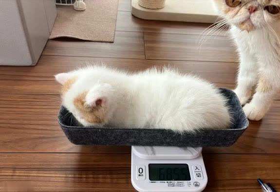 有猫妈妈的陪伴,还有主人悉心的照料,主人会非常细心的经常记录它们的体重,一点点的看着它们茁壮成长。